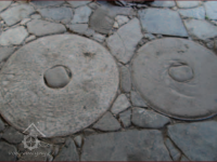 Mlecí kameny ve dlažbě, 2013, © Vodní mlýny na Frýdecko-Místecku, (Prvky na obrázku: mlecí kámen)