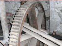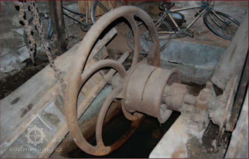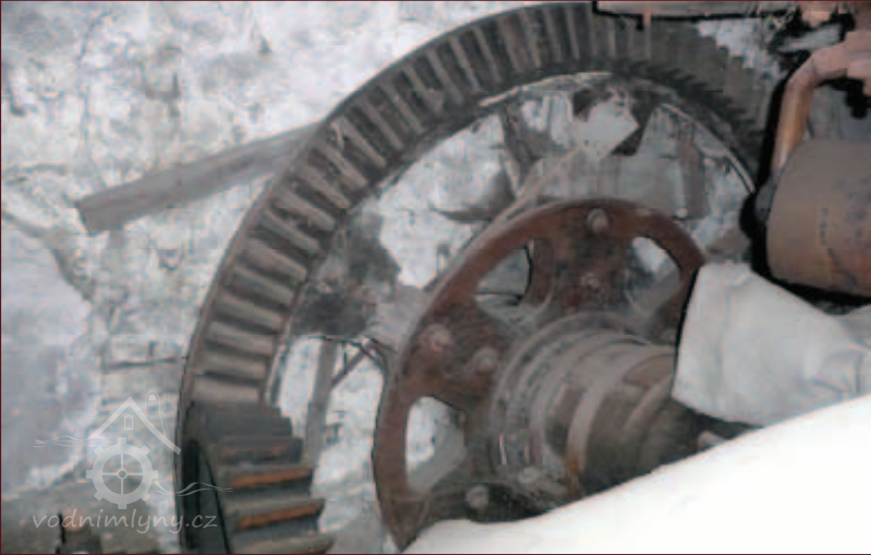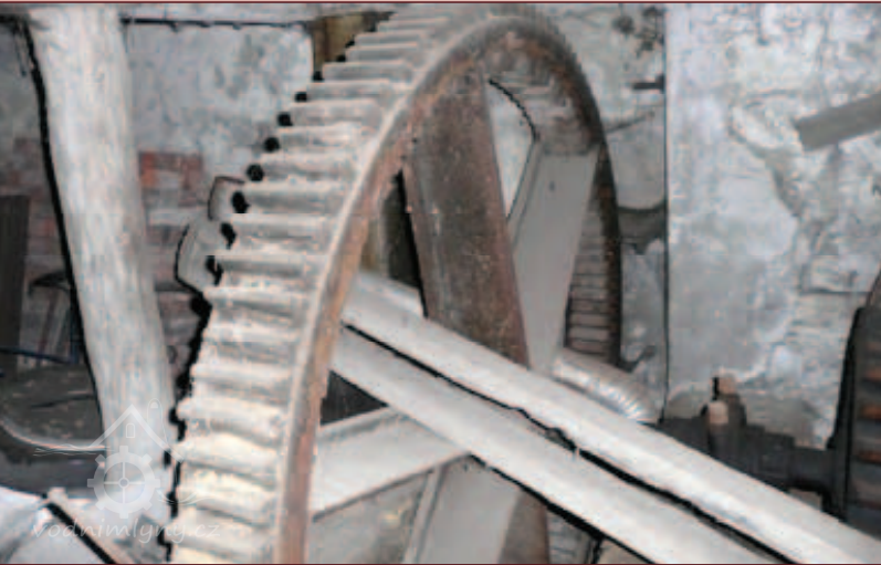 Palečné kolo, 2013, © Vodní mlýny na Frýdecko-Místecku, (Prvky na obrázku: transmise, řemenice, převody - ozubená kola, pastorky (průmyslový výrobek))