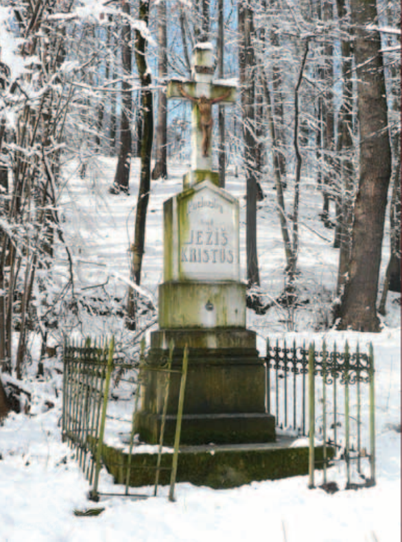 Kříž mlynářské rodiny Murckovy, 2013, © Vodní mlýny na Frýdecko-Místecku, (Prvky na obrázku: epigrafické památky (nápisy, datování aj.), drobné sakrální památky)