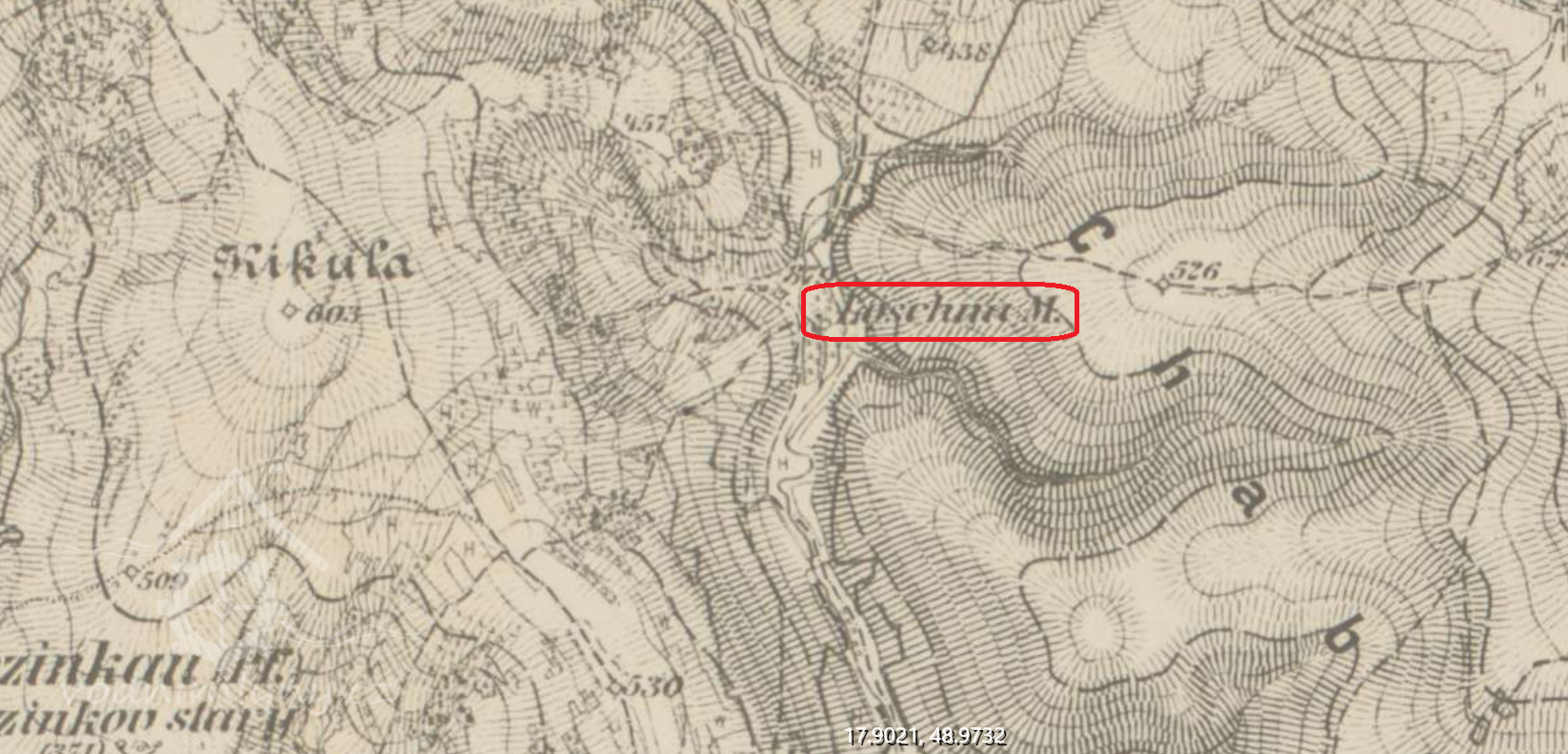 Na samotě mimo obec, na samé hraici se Slovenskem.