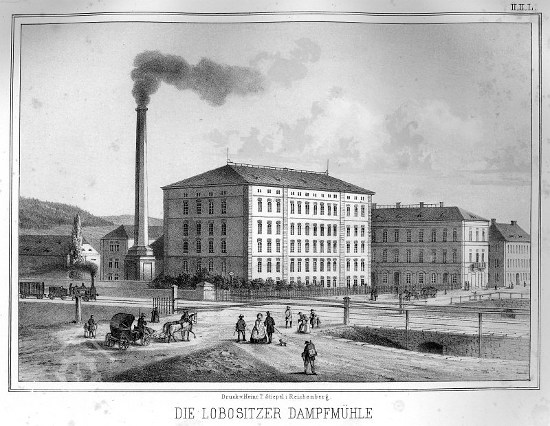 Společnost Prag-Lobositzer Dampfmühle byla založena roku 1843, podíl v ní měli Jan Adolf II. Schwarzenberg (1799–1888) a stavební podnikatel Adalbert Lanna (1805–1866), jehož firma současně budovala také lovosický přístav. Projekt mlýna vytvořil roku 1844 Jan Perner (1815–1845), po jeho tragické smrti byl upraven a stavba situována na dnešní místo. Mlýn byl spuštěn roku 1846, snad jako první parní mlýn v Čechách. Druhým podnikem společnosti byl mlýn na Smíchově v dnešní Ostrovského ulici, zbořený v šedesátých letech 20. století. Oba mlýny měly celkem čtyři parní stroje o výkonu 129 HP a ročně semlely 350 000 vídeňských měřic (21 520 m3) mouky. Klasicistní správní budova čp. 165, zvaná „Bílý dům“, byla postavena zároveň s budovou mlýnu čp. 219. Roku 1880 byl jeho pohon modernizován a nutné stavební úpravy provedl lovosický stavitel Carl Seeman, nový komín postavila v témže roce firma Schöberl & Co. z Karlsruhe. Okolní areál vznikl po roce 1895, kdy byla založena Lobositzer Aktiengesellschaft für Erzeugung vegetabilischen Oele, která budovu mlýnu zakoupila, postavila západně od ní nové haly lisoven a rafinerií a začala v nich vyrábět řepkový a lněný olej. Z roku 1910 pocházejí prováděcí plány 21,7 metru vysoké sprinklerové věže uprostřed areálu od Josefa Riedla a Hermanna Goedeckeho z projekční kanceláře stavební firmy Alwina Köhlera, kteří nejspíše navrhli také vedlejší budovu kotelny s typickým pětiúhelníkovým štítem. Rozšíření lisoven roku 1914 umožnilo po první světové válce zpracovat 30 000 tun semene ročně, od roku 1923 se zde vyrábí také fermež. Roku 1924 podepsal architekt Paul Brockardt (1882–1941) plány nových budov čp. 424 na západním okraji areálu, určených k výrobě linolea podle patentu Paula Slanskyho, zahájené roku 1928, později však byla licence prodána a.s. Deutsche Linoleum-Werke. Paul Brockardt je zřejmě také autorem budovy laboratoří čp. 499 podél dnešní ulice 5. května. Rostlinné oleje se tu vyráběly donedávna. Na jaře 2013 zahájena demolice.
