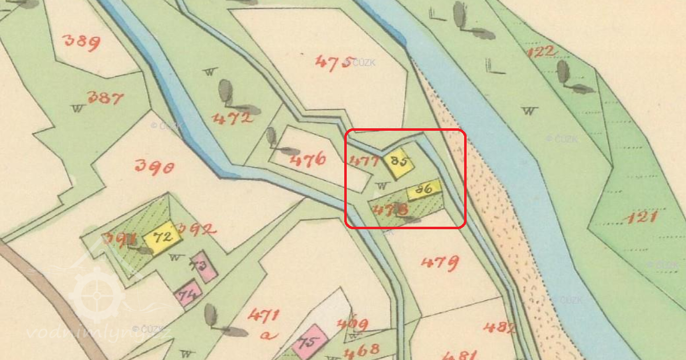 Mlýn se snad uchoval jako přestavěný objekt čp. 18 pí. MUDr. Magdy Bošotové a p. Ing. Alana Ciompa na parc. č. 511.