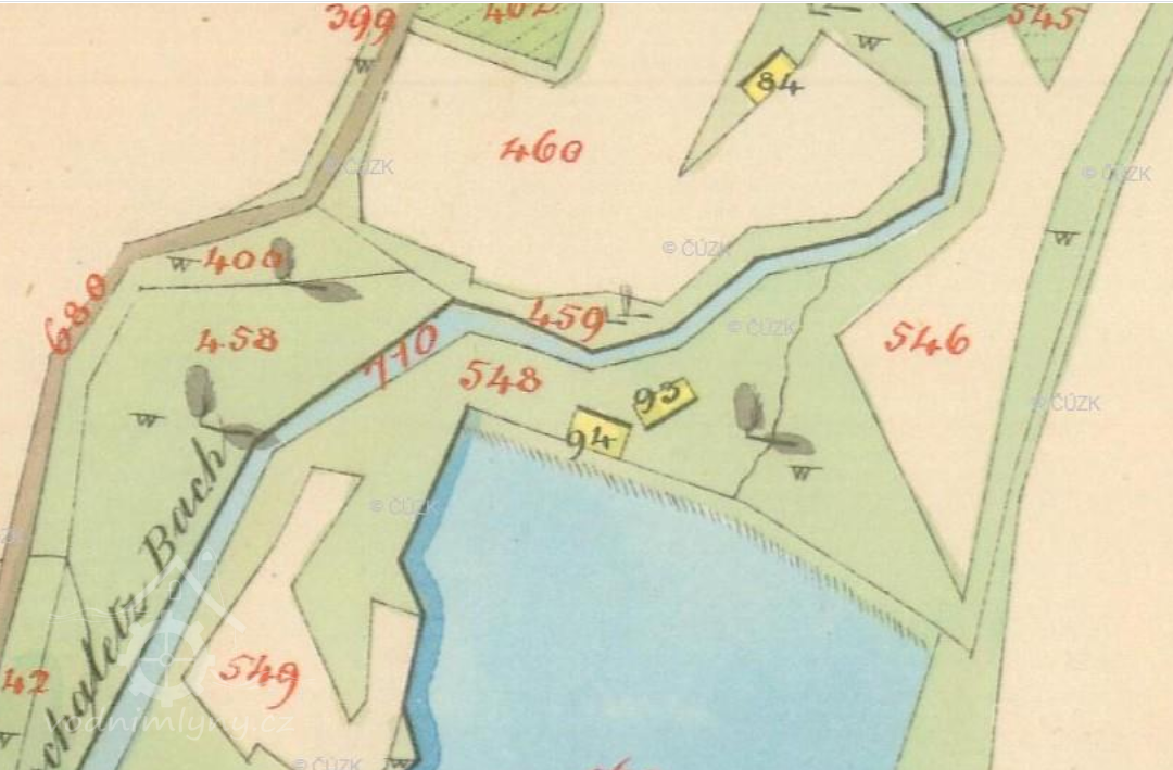 Před rokem 1778 držel zde mlýn Jan Tvrdý. Dne 22. června 1778 od něj rustikální mlýn i příslušný grunt čp. 12 odkoupil Adam Sabela, po němž v roce 1804 dědil syn Jiří. Mlýn pak od roku 1818 provozoval Sabelův švagr Ondřej Polák, po němž mlynářské řemeslo v roce 1826 převzal manžel jeho dcery Mariany, Jiří Jančík. Převodní cena byla tehdy stanovena na 600 zlatých.