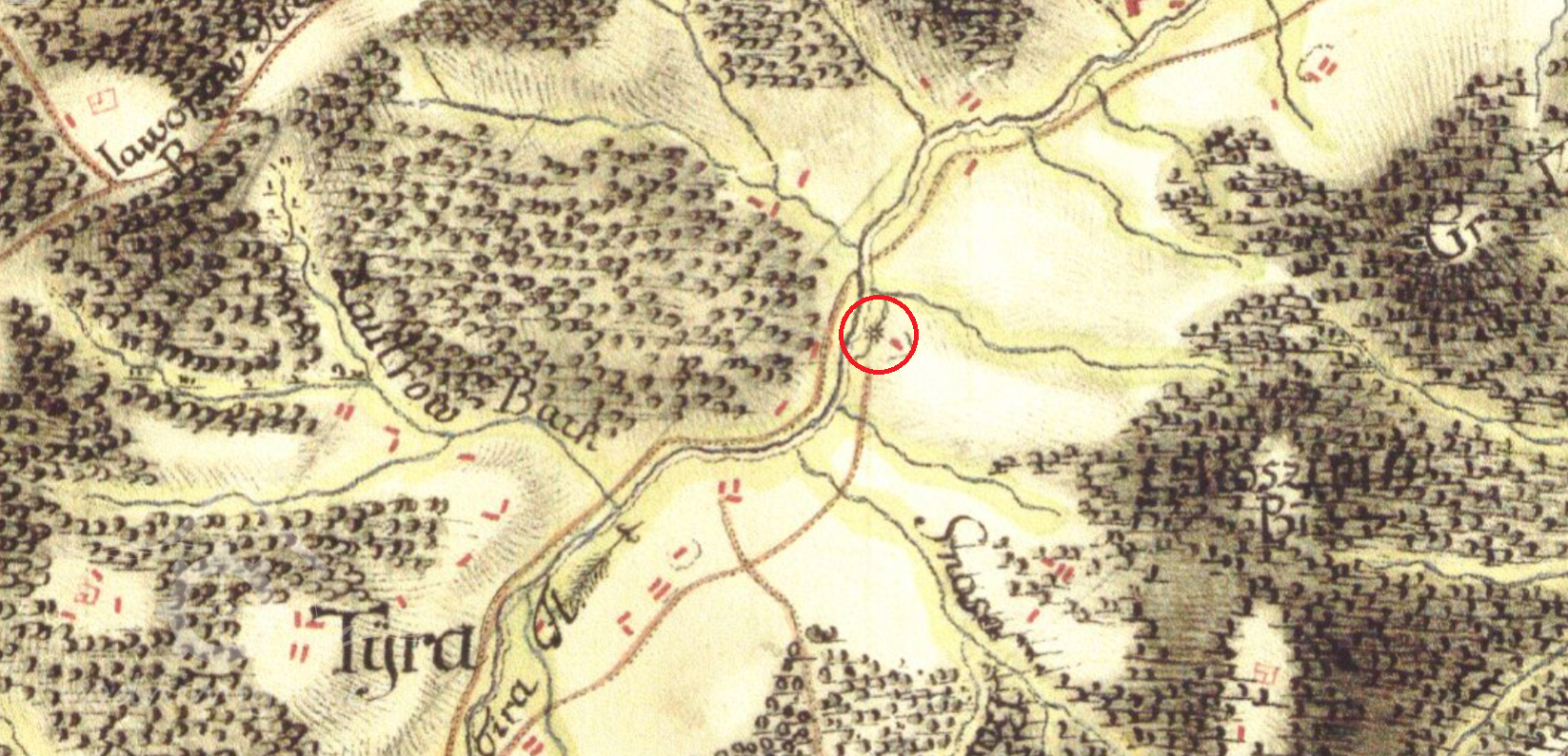 Mlýn byl největší v Tyře, taky nejstarší, je uveden na mapě 1.vojenského mapování z let 1764 - 1768. Stavěl ho Sikora,mlýn však propil, („přegazdoval“) a mlýn od něho odkoupil Pavel Haltof. Původně byl v tomto mlýně tzv. ferlok, tj. prodejna smíšeného zboží spojená s výčepem, proto prý majitel všechno propil. V pol. 19. stol. zde dva mlýny na horní vodu zpracovaly ročně 40 měřic žita, 10 měřic ječmene a 80 měřic ovsa. Pila zpracovala 40 kmenů na 250 desek ročně.
