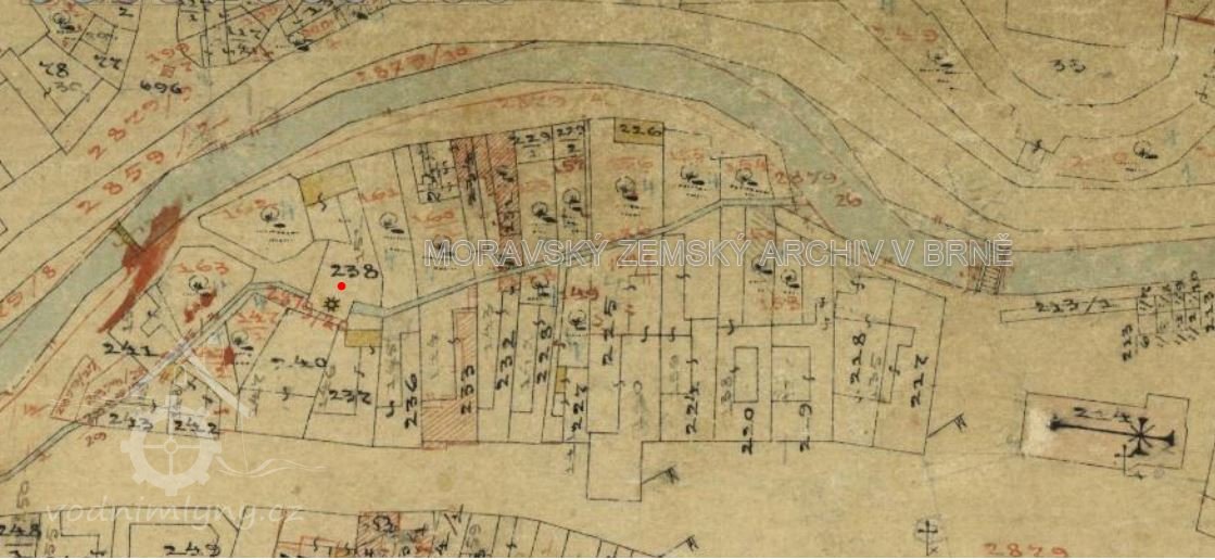 1877 sepsán protokol o dělení vody na jezu v Zahájeném mezi velkostatkem a mlýny čp. 139, 140, 151 v Bystřici p/H a mlýnem č. 3 v Rychlově
