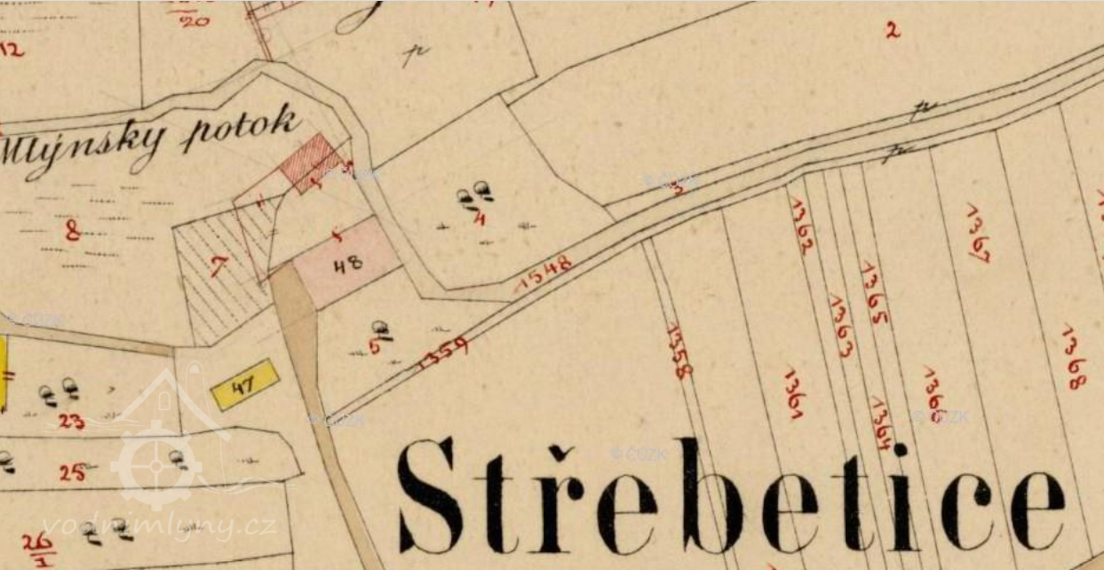 1675 Lánový rejstřík: v Třeběticích 6 zahradníků, majících po jednom mlýnu a v každém z nich jedno až dvě složení