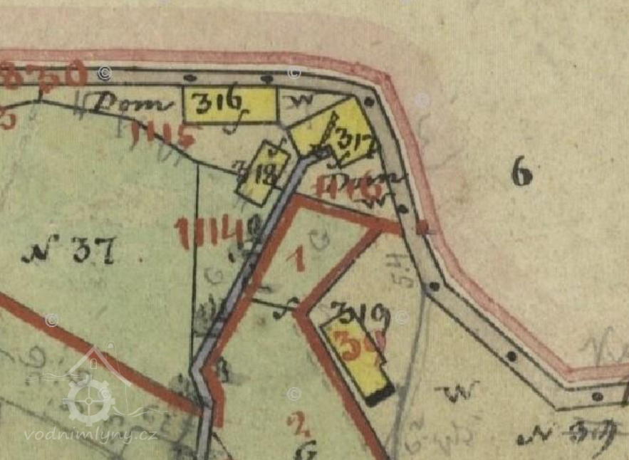 Na leteckých snímcích z roku 1953 jsou viditelné již pouze trosky mlýna.