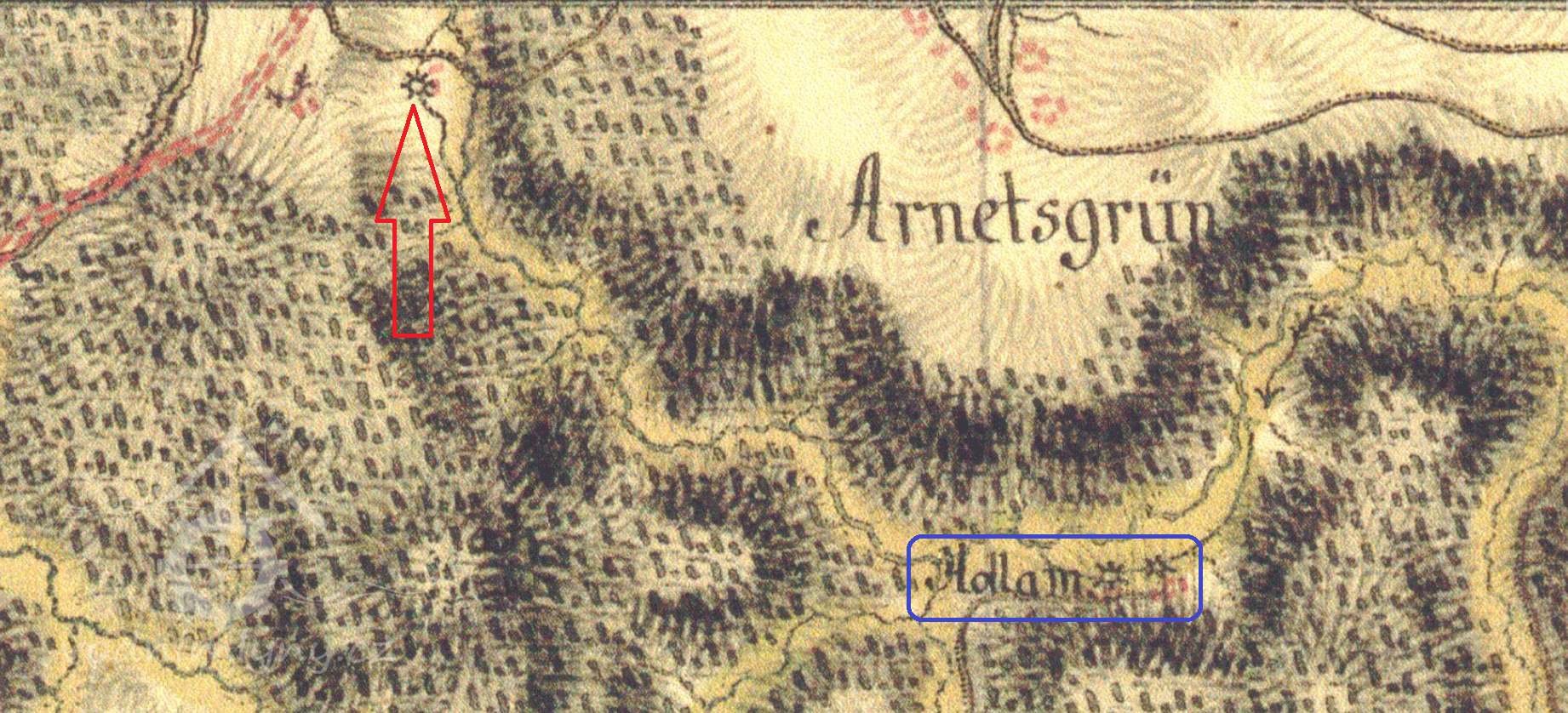 originální mapa, výřez, 1837, © www.archivnimapy.cuzk.cz
