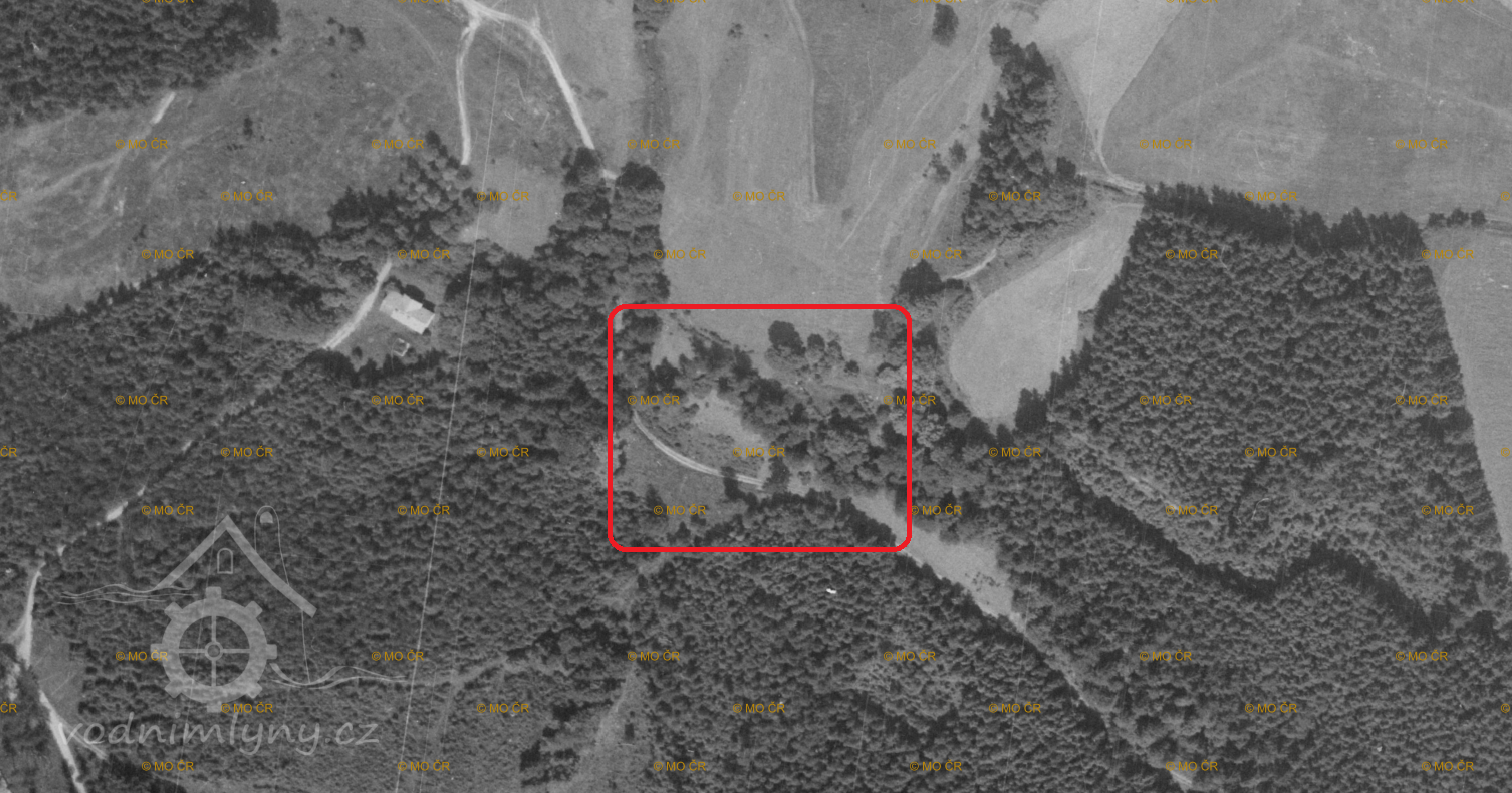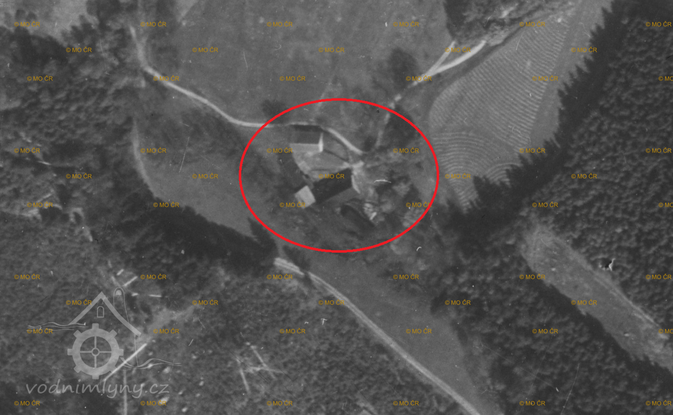 Letecký měřický snímek, výřez (mlýn již zmizel), 1962, © lms.cuzk.cz