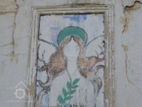 Detail malby mezi okny severního štítu, 2019, © Martina Havelková, (Prvky na obrázku: malovaná výzdoba fasád a štítů)