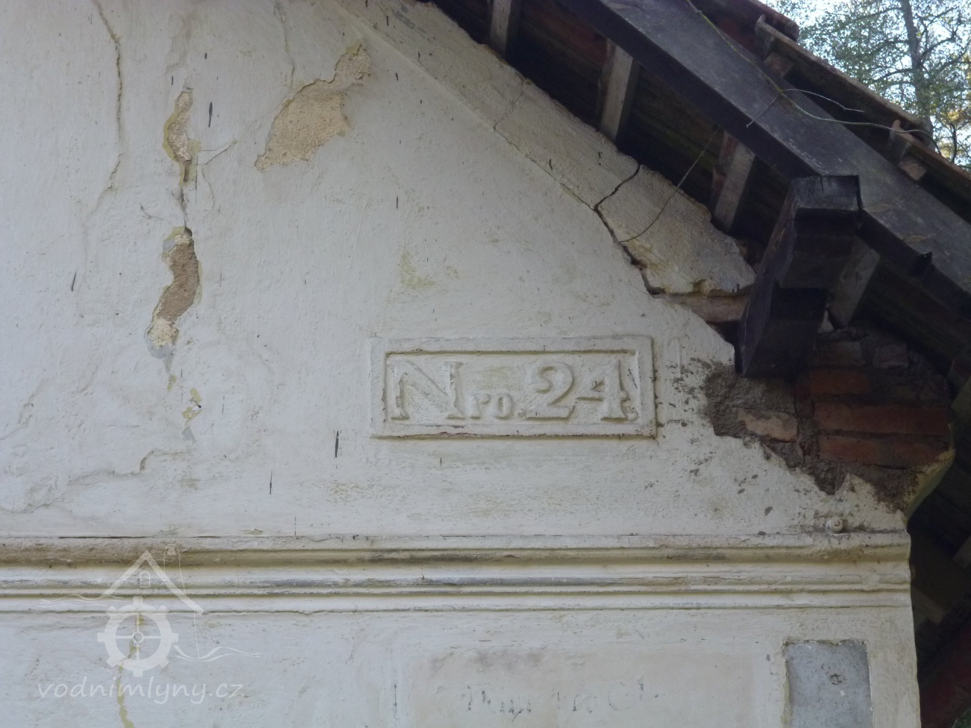 Číslo popisné na fasádě severního štítu, 2019, © Martina Havelková, (Prvky na obrázku: epigrafické památky (nápisy, datování aj.))