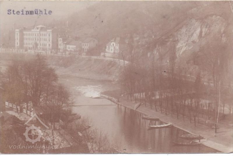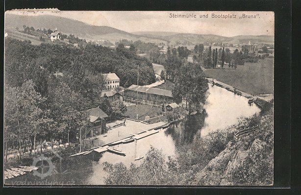 Pohlednice - mlýn, restaurace, přístav, 1916, © valentinska.cz