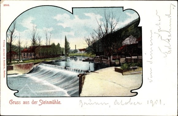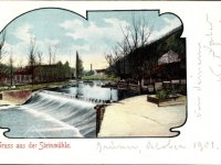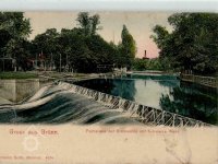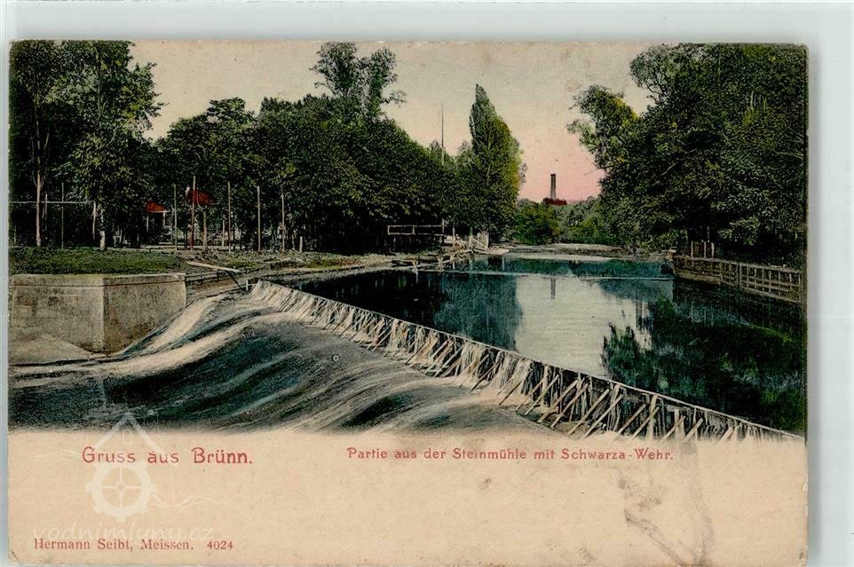 Pohlednice - pohled na jez u Kamenného mlýna, 1901, © oldthing.de