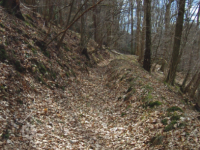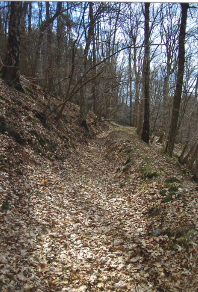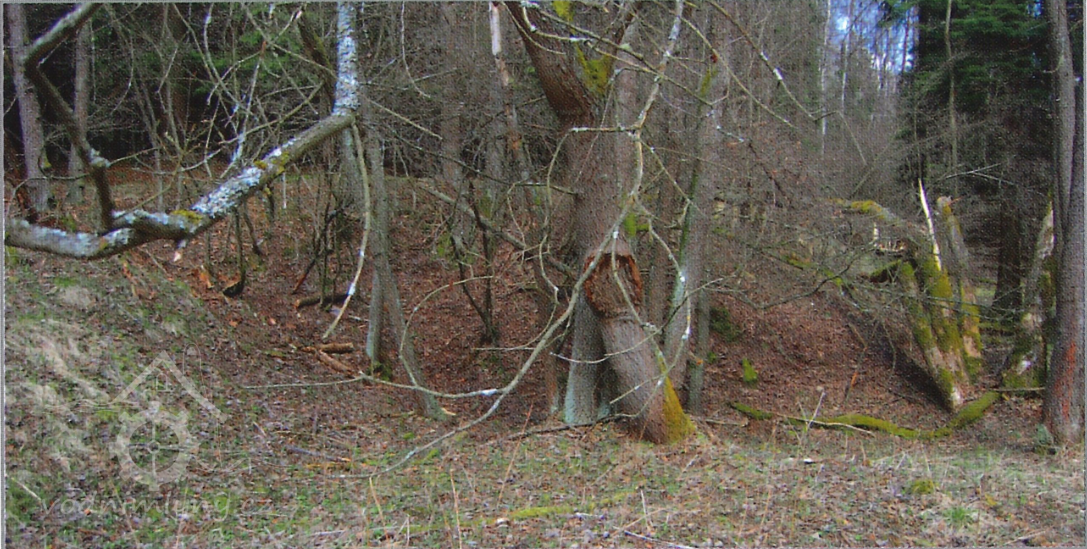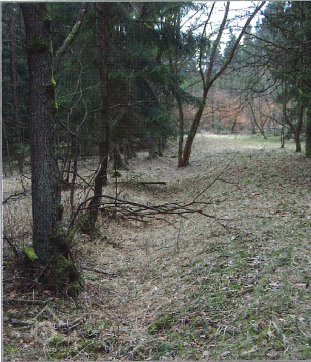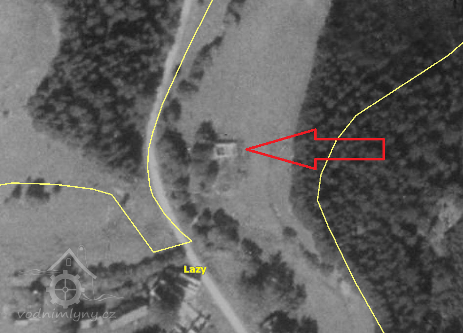 Pohled na hráz rybníka, pod níž ležel mlýn, 2015, © viz mapy.cz