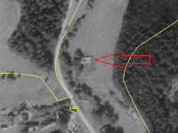 Letecké snímkování a mapa pozemkového katastru, výřez, 2009-2015, © viz cirkevni-restituce.cuzk.cz