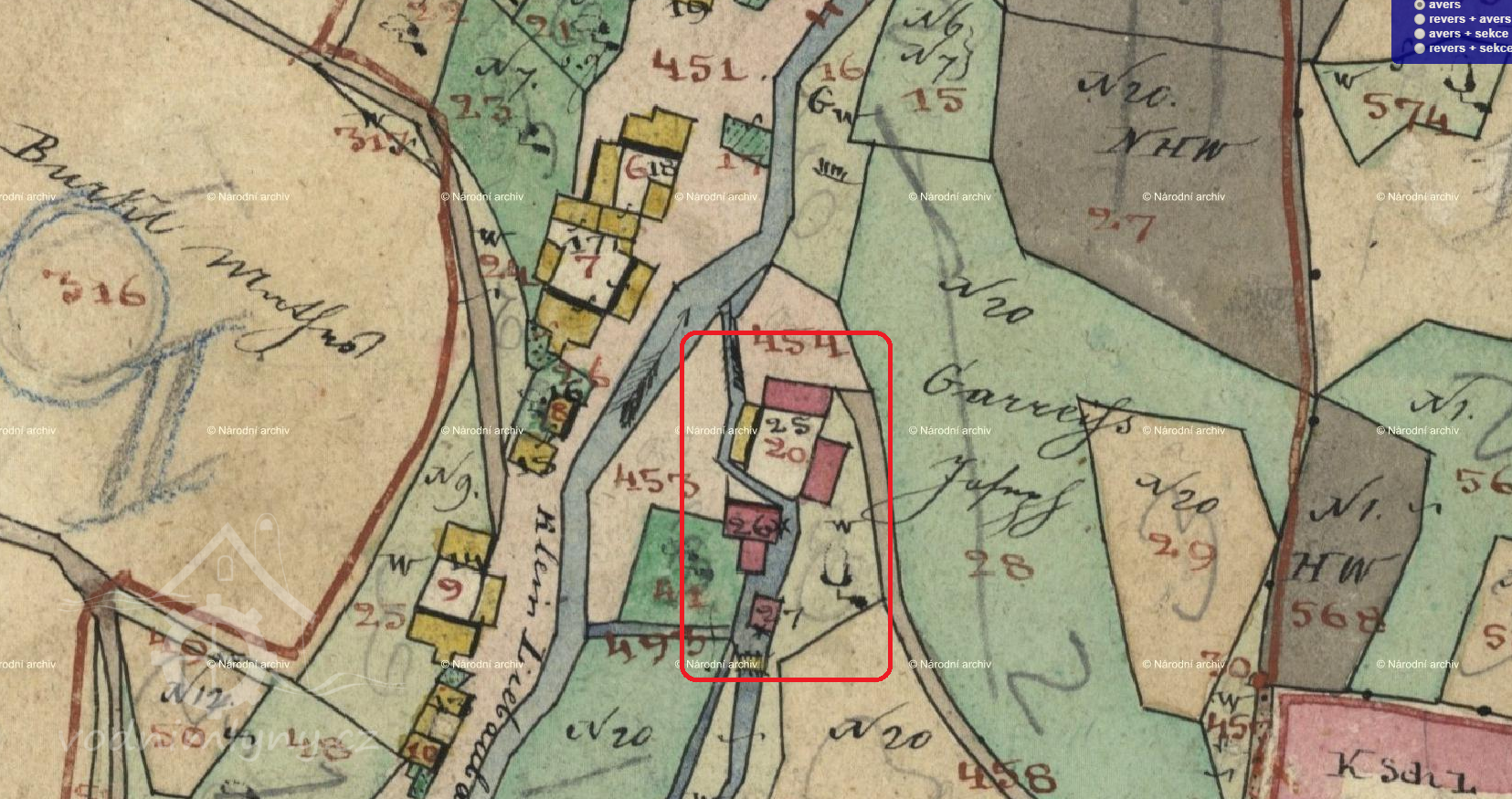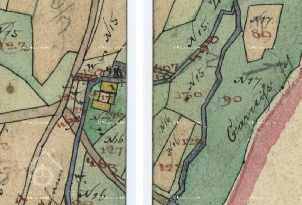 Indikační skica, výřez, 1824–43, © viz archivnimapy.cuzk.cz