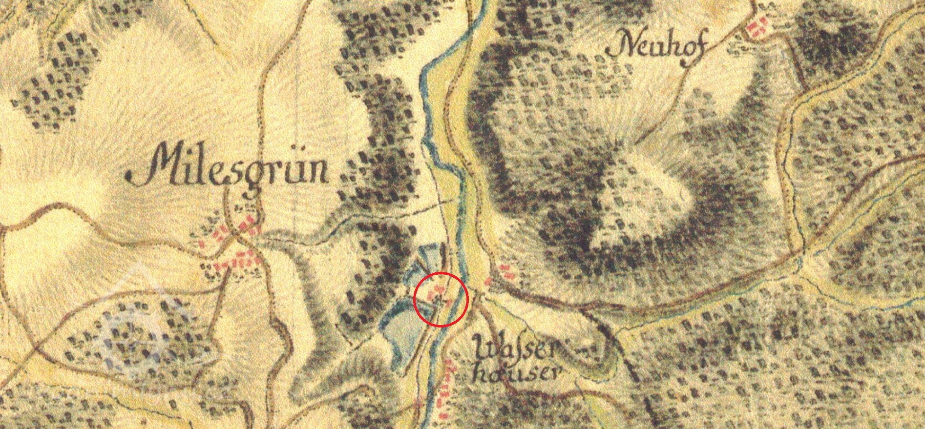 Pohled na mlýn, 2015, © mapy.cz