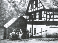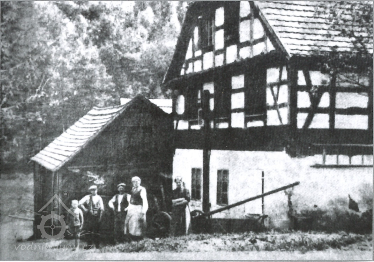 Stará fotografie mlýna, v popředí obytná část, za ní mlýnice se střešní nástavbou, 40. léta 20. st., © zdroj Z. Procházka: Cestami krajánků....., díl III