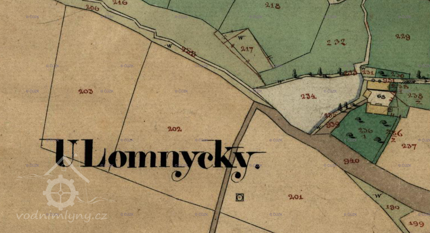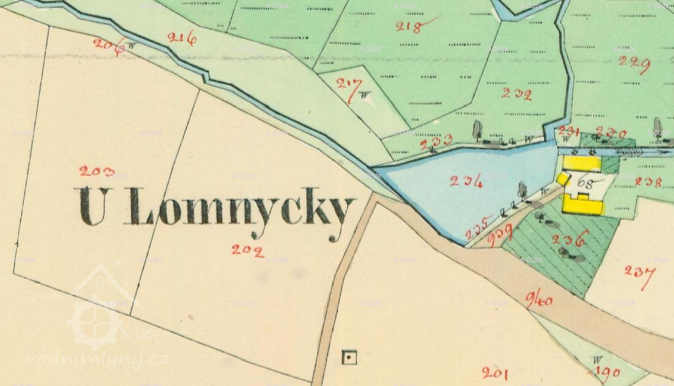 Dolejší mlýn, mlýn Lomnice, Lomice, Lomička, Lomnička, Vůsí »