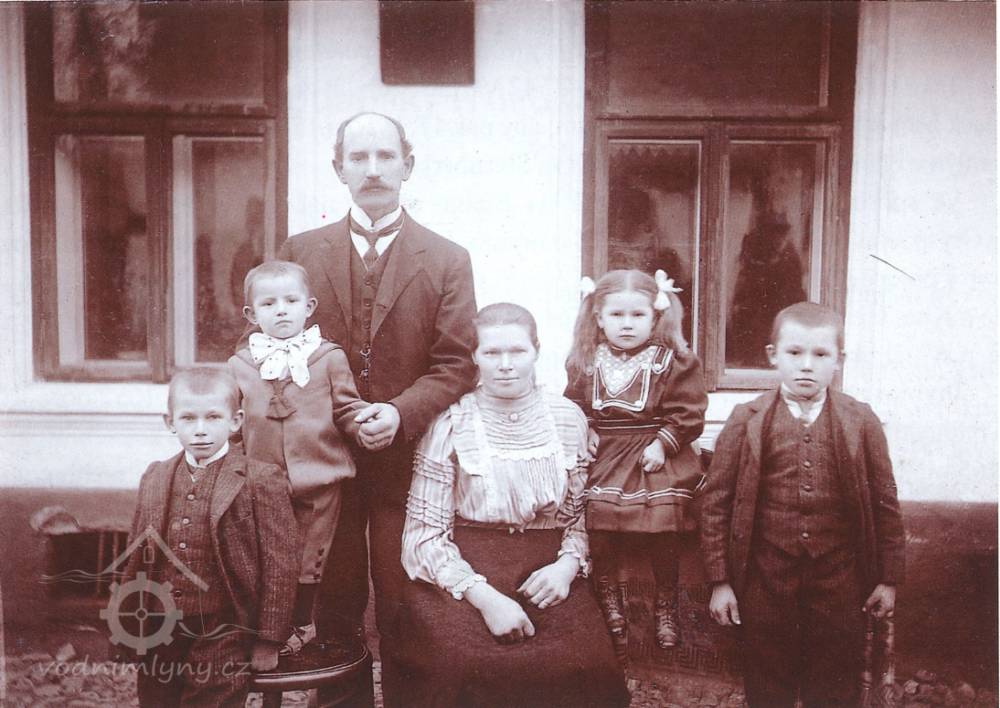 Mlynář Josef Nepodal s manželkou Marií roz. Slavíčkovou a dětmi, zcela vpravo budoucí mlynář Jaroslav, 1912, © Miroslav Nepodal, archiv