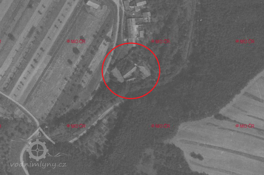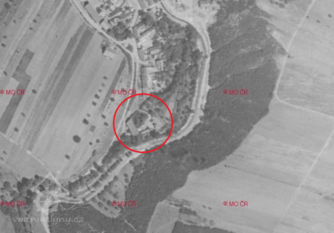 Letecký měřický snímek, výřez, 1950, © ags.cuzk.cz/archiv