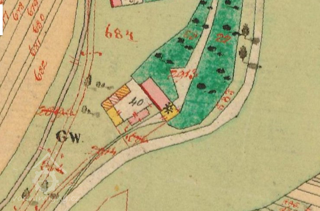 Katastrální mapa evidenční, výřez, 1888, © ags.cuzk.cz/archiv