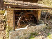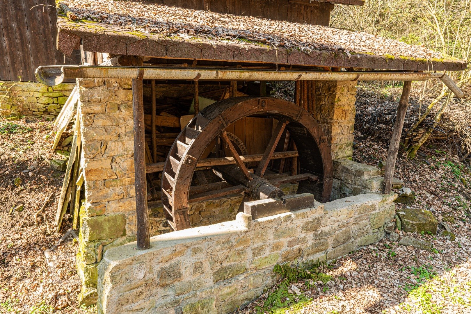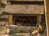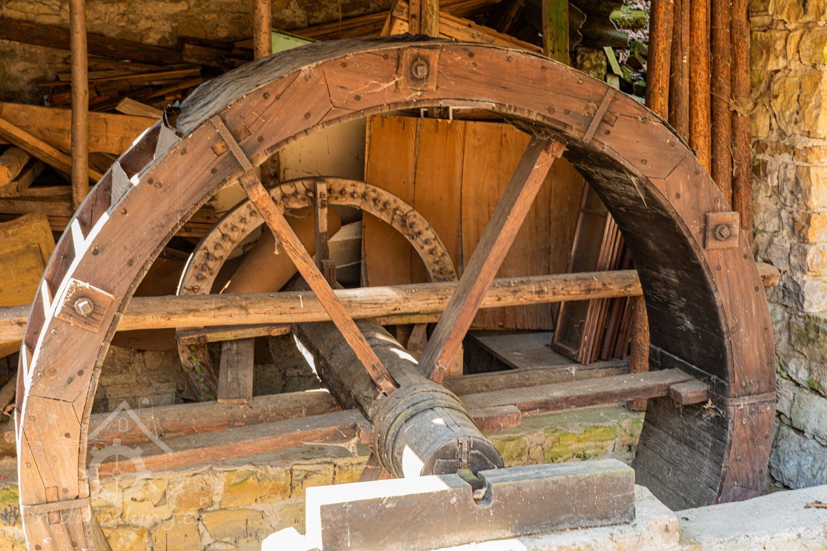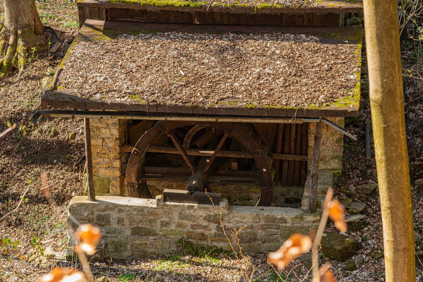 Vodní kolo, 04 2026, © Honza Hanys Hanys, (Prvky na obrázku: Vodní kolo, transmise, řemenice, převody - paleční kola, pastorky a cévníky (řemeslný výrobek))