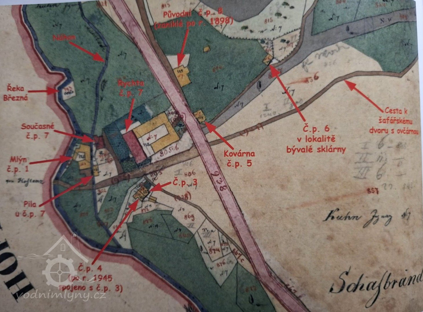 Nákres vodoprávní situace, 1835-2026, © ags.cuzk.cz/archiv a Václav Jetmar