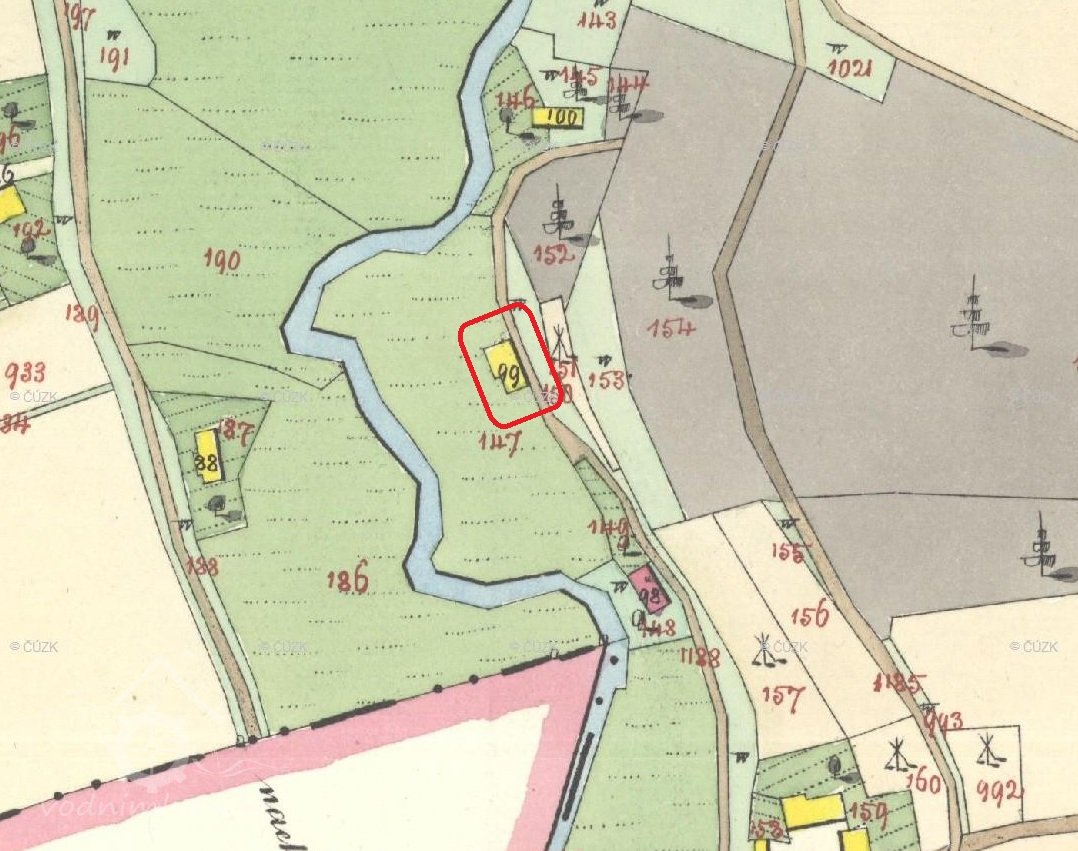 Originální mapa stabilního katastru, výřez, 1876, © ags.cuzk.cz/archiv