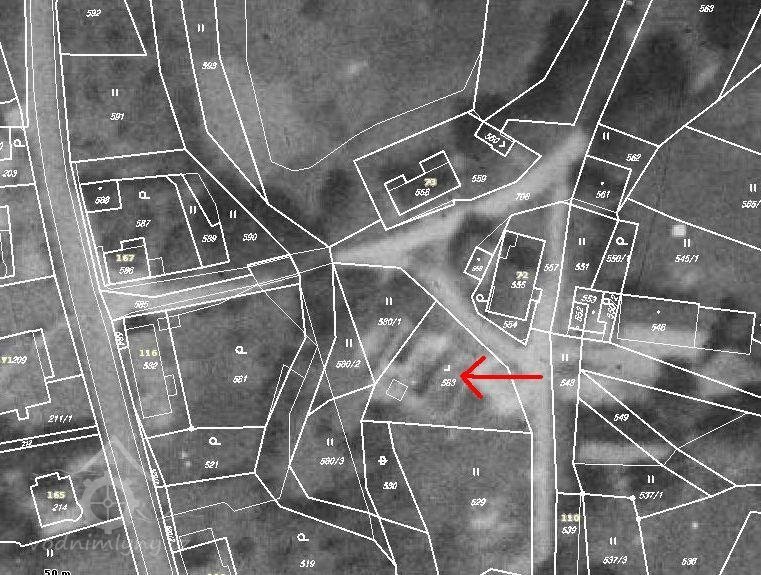 Výřez leteckého snímku lokality a východně od bývalého mlýna, 2013, © Český úřad zeměměřický a katastrální