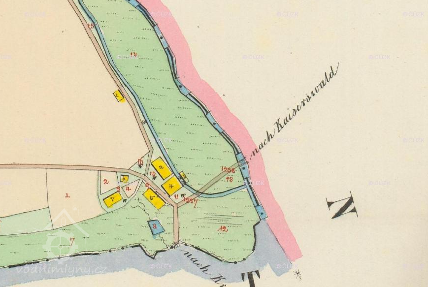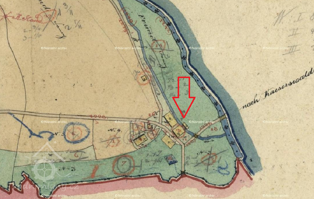 Císařský povinný otisk, výřez, 1840, © archivnimapy.cuzk.cz
