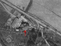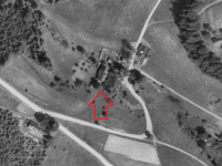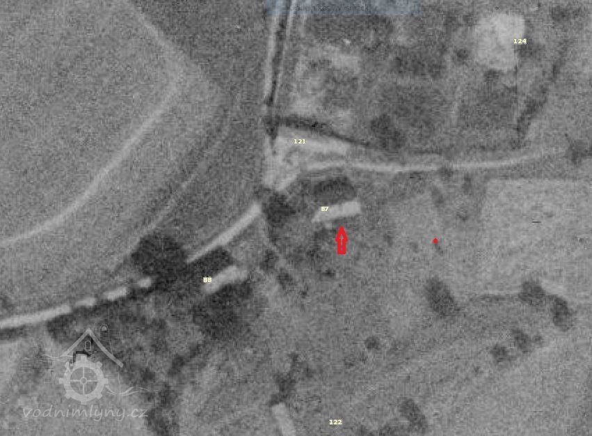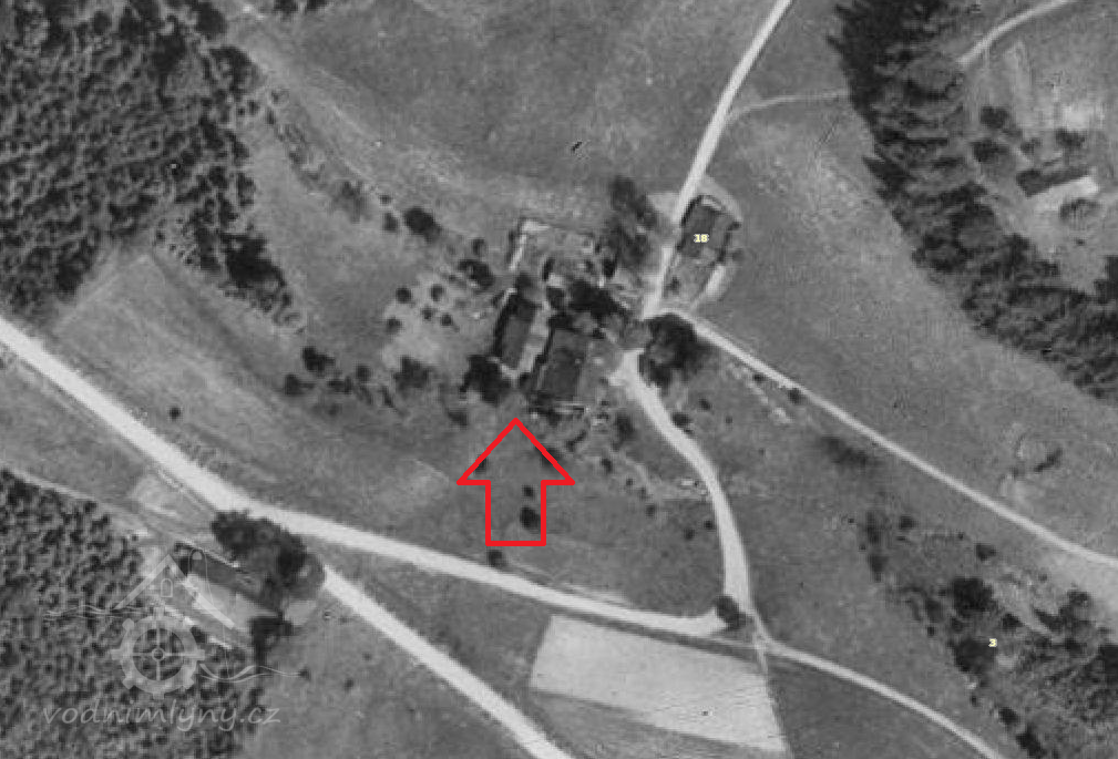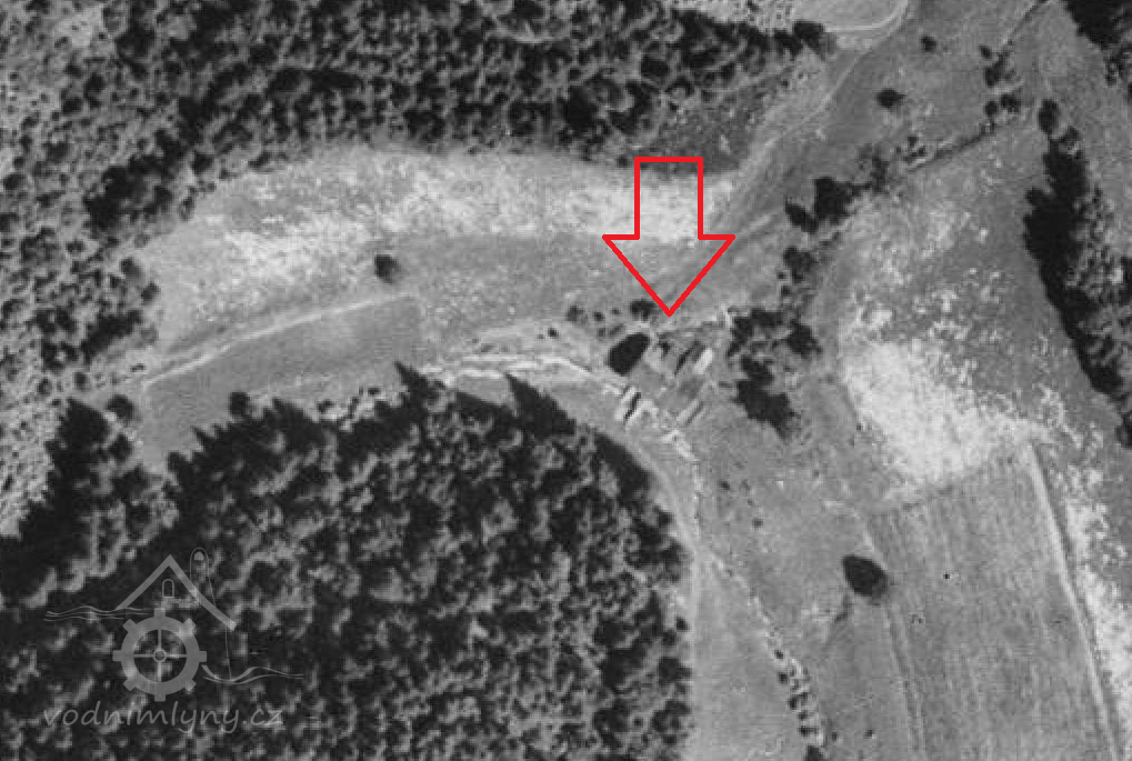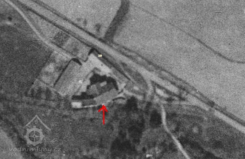 Letecký záběr, patrné zříceniny mlýna, 1953, © kontaminace.cenia.cz