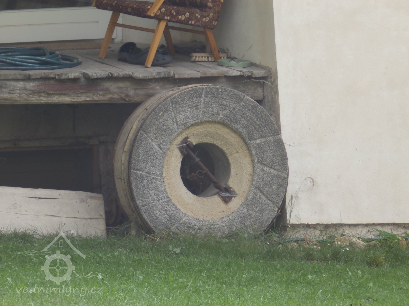 Jeden z mlýnských kamenů zdobících dvůr mlýna, 27.9.2016, © pepino, (Prvky na obrázku: mlecí kámen)