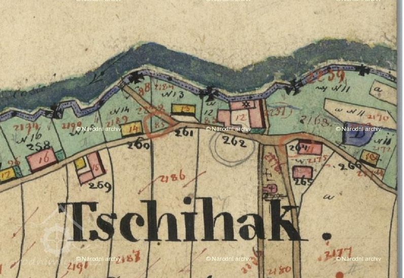 Mlýn Čihák na mapě stabilního katastru, 1840, © http://archivnimapy.cuzk.cz/