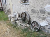 zbytky zařízení u mlýna, 2016, © Veselý, (Prvky na obrázku: transmise, řemenice, převody, mlecí kámen)