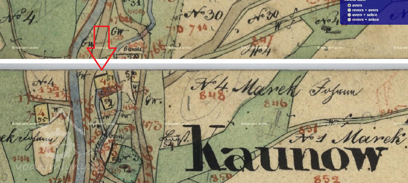 Císařský povinný otisk, výřez, 1841, © viz archivnimapy.cuzk.cz